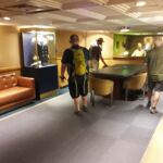 Vracím se na palubu, kde zrovna probíhá výklad toho, co se vše muselo stát, aby letadlo mohlo odstartovat. Která barva uniformy znamenala co – transport letadla z hangáru, zprovožnění zbraní,… celé to stíhali za 90s. 🙂 Pak už se propracováváme do dalších pater. Je zde např. několik místnosti, které se starali o komunikaci. Fungovala jim potrubní pošta, které říkali králičí. Kajuty posádky, kapitána i admirála. Zajímavosti, co se na celé lodi spotřebovalo za den. 🙂