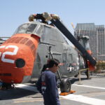 Na palubě zrovna probíhá slavnostní zakončení jedné ze škol amerického námořnictva a část je uzavřena. Stejně jako o pár metru vedle je oslava odchodu do důchodu nějakého hodnostáře. Prý je to tu dost běžně, vč. svateb a pohřbů. Chtěli jsme se mrknout i na můstek, ale cedule hlásí, že dneska máme smůlu, tak se vracíme k letadlům a následně i k záchraným vrtulníkům, do kterých vám dovolí sednout a připoutat se.