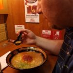 Samostatné boxíky, abyste si vychutnali svůj oběd v klidu, nevidíte na obsluhu, objednáváte si přes zaškrtávání na papíře, jak kdyby vás někdo teleportoval přímo do Asie. Pro mě první zkušenost ramenem, Ráďovo naopak oblíbené jídlo. Moc spokojení jsme oba. Jako tečka na dortu je návštěva jejich záchoda. 😀 Majitel prý má motto, že v jeho restauraci nikdy nesmí dojít toaleťák.